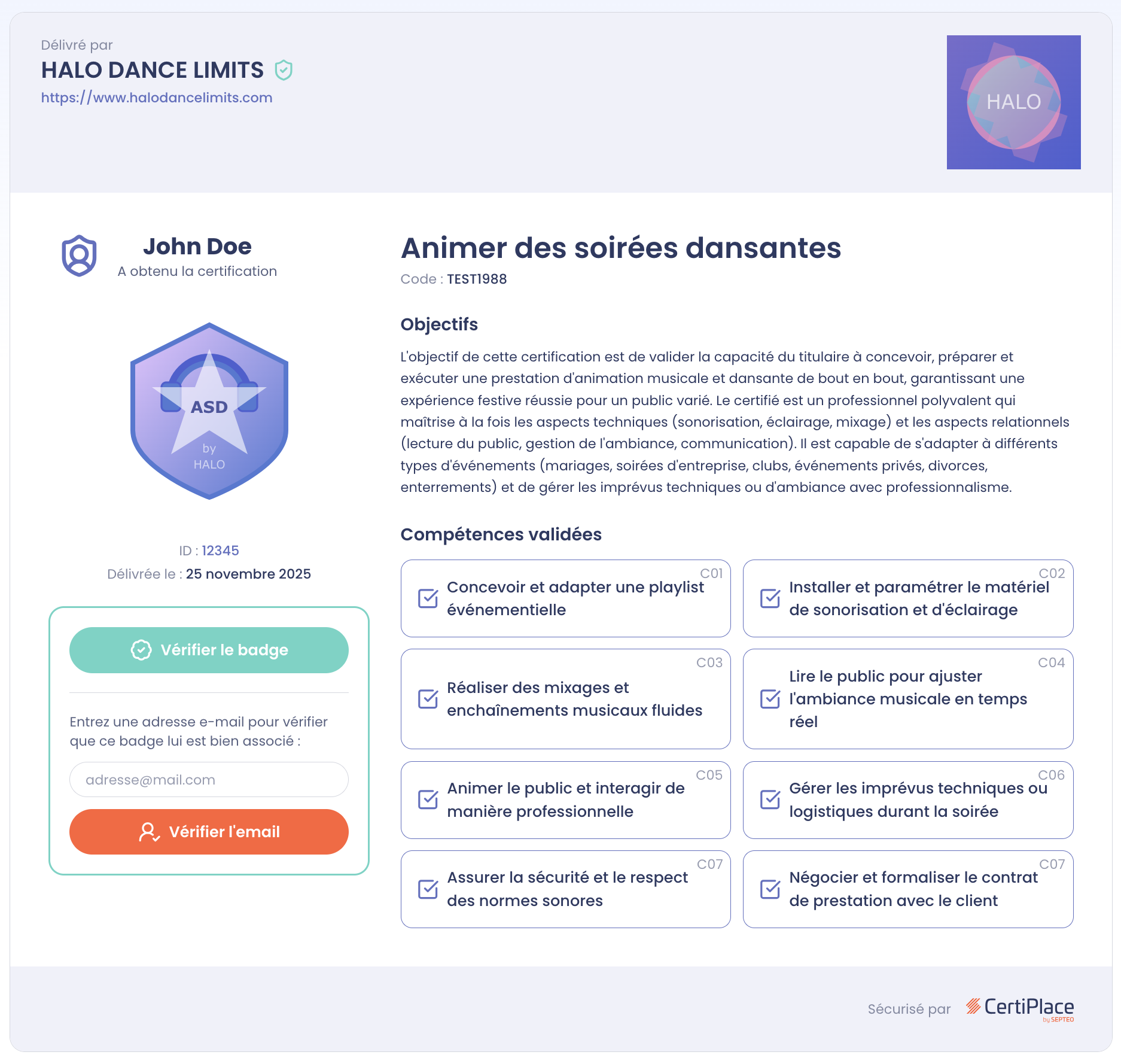 Le badge de certification n'est pas qu’un symbole : il apport une reconnaissance concrète et immédiate, facilite le partage et montre la valeur réelle de votre certification et des compétences de vos certifiés.